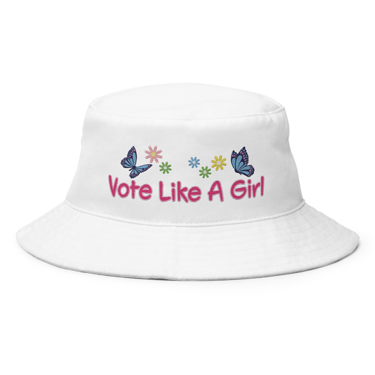 • Embroidered Bucket Hat in Cotton, 'Vote Like A Girl'